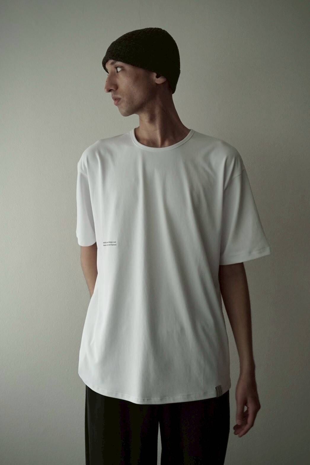 身体を動かすときも、リラックスして過ごすときも、心地よさを感じていただけるTシャツです。デザインにもこだわり、デイリーに使えるスタイルになっています。